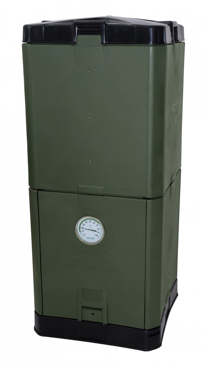 200 litran AeroBin-lämpökompostorissa on patentoitu ”kompostointikeuhko”, kompostointia tehostava ja helpottava ilmastointikanava. Tutustu!