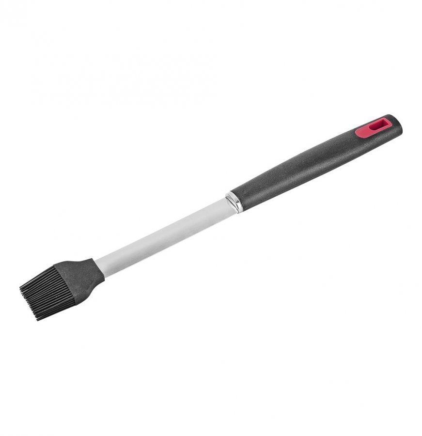 Ruoka pysyy mehukkaanna ja mausteet imeytyvät paremmin, kun sudit marinadia ruokaan grillatessa. Tässä sudissa on pitkä varsi ja silikoninen pää. Muovikahva.
