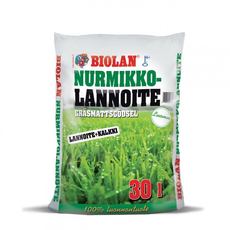 Biolan Nurmikkolannoite on nurmikentille tarkoitettu erikoislannoite. Siinä on vain puhtaita luonnon raaka-aineita: Kompostoitua broilerinlantaa, rypsirouhetta, korallikalkkia, melassia ja merileväjauhetta. Ravinteet ovat eloperäisessä, pääosin hidasvaikutteisessa muodossa. Näin ravinteet eivät huuhtoudu veden mukana ja riittävät antamaan nurmikolle tuuhean kasvun koko kasvukaudeksi. Kun nurmikenttä hoidetaan Biolan Nurmikkolannoitteella, ei nurmikko sammaloidu, eikä erillistä ylläpitokalkitusta tarvita.