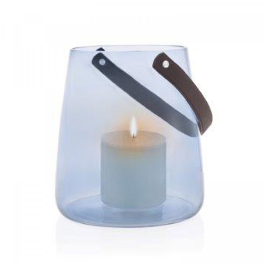 Lyhty lasista ja alumiinista hienoilla nahkakahvoilla. Saatavilla 2 koossa. Valo ei sisälly.