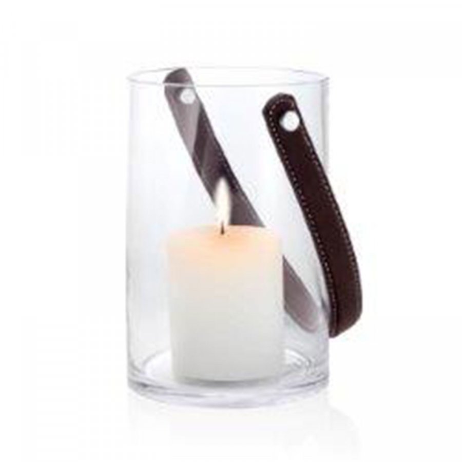 Lyhty lasista ja alumiinista hienoilla nahkakahvoilla. Saatavilla 2 koossa. Valo ei sisälly.