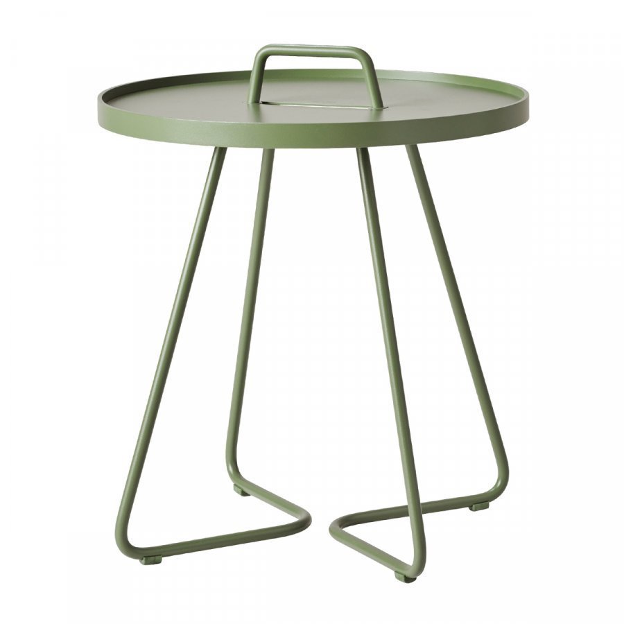 Cane-linen On-the-move on veikeä ja monikäyttöinen pikkupöytä niin sisä- kuin ulkokäyttöönkin. Kevyestä ja kestävästä alumiinista valmistettua pöytää on helppo siirrellä kantokahvasta, ja irrotettavaa pöytätasoa voi käyttää myös erillisenä tarjottimena. On-the-move on ketterä ja tyylikäs ulkopöytä terassilla, parvekkeella tai puutarhassa, ja sen iloinen ilme sopii hyvin myös sohvapöydäksi sisätiloihin. Pöydän on suunnitellut tanskalainen muotoilutoimisto Strand+Hvass. On-the-move on suunniteltu kestämään kaikenlaisia sääolosuhteita, mutta talvikauden ajaksi se suositellaan varastoimaan sisätiloihin.