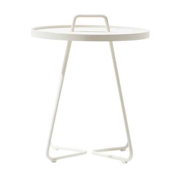 Cane-linen On-the-move on veikeä ja monikäyttöinen pikkupöytä niin sisä- kuin ulkokäyttöönkin. Kevyestä ja kestävästä alumiinista valmistettua pöytää on helppo siirrellä kantokahvasta, ja irrotettavaa pöytätasoa voi käyttää myös erillisenä tarjottimena. On-the-move on ketterä ja tyylikäs ulkopöytä terassilla, parvekkeella tai puutarhassa, ja sen iloinen ilme sopii hyvin myös sohvapöydäksi sisätiloihin. Pöydän on suunnitellut tanskalainen muotoilutoimisto Strand+Hvass. On-the-move on suunniteltu kestämään kaikenlaisia sääolosuhteita, mutta talvikauden ajaksi se suositellaan varastoimaan sisätiloihin.