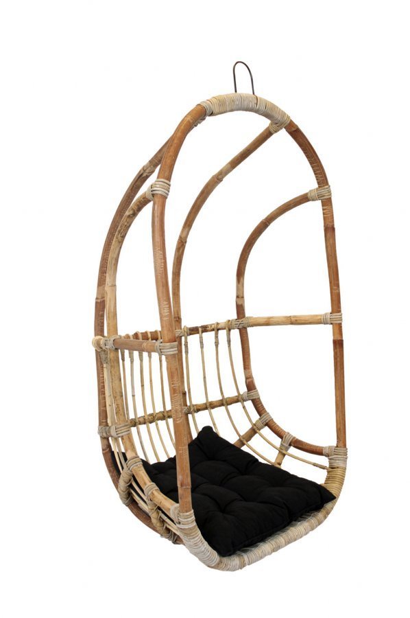 Riipputuoli luonnonväristä rottinkia. Istuintyynyt mukana. Leveys 70, syvyys 60, korkeus 130 cm. Enimmäiskuormitus 120 kg.