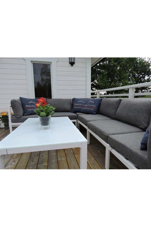 Pöytä valkoiseksi maalattua alumiinia, Spray Glass -pöytälevy. Korkeus: 45 cm Pituus: 120 cm Leveys: 70 cm Korkeus pöytälevyyn: 40 cm Pöytälevyn paksuus: 5 cm