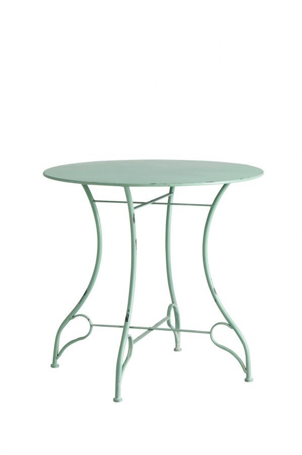 Pyöreä, romanttinen puutarhapöytä metallia. Korkeus 75 cm. Ø 80 cm. Paino 13 kg. Tarkista rahtimaksu Toimitus-välilehdeltä. Mikäli käytät kalustetta ulkona, suosittelemme että sijoitat sen käytön jälkeen katoksen alle.