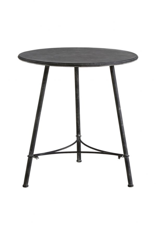 Pöytä metallia. Korkeus 70 cm, Ø 65 cm. Toimitetaan koottuna. Sijoita huonekalu katoksen alle tai katetulle terassille (ei ulkokäyttöön).