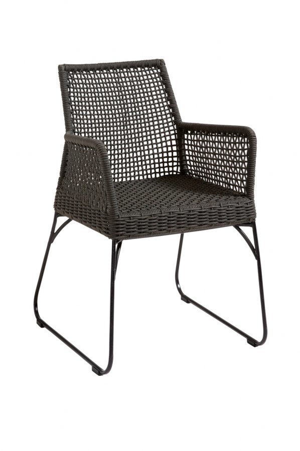 Käsinojallinen tuoli, jonka runko jauhemaalattua galvanoitua terästä. Istuin ja selkänoja UV-suojattua polyesterinarua. Sisäkäyttöön sekä ulkokäyttöön katoksen alla. Korkeus 80 cm, leveys 59 cm, syvyys 59 cm.