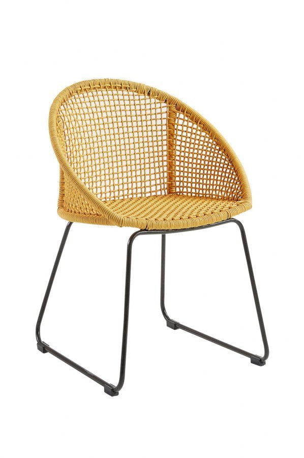 Käsinojallinen tuoli, jonka runko jauhemaalattua galvanoitua terästä. Istuin ja selkänoja UV-suojattua polyesterinarua. Sisäkäyttöön sekä ulkokäyttöön katoksen alla. Korkeus 84 cm, leveys 64 cm, syvyys 60 cm.