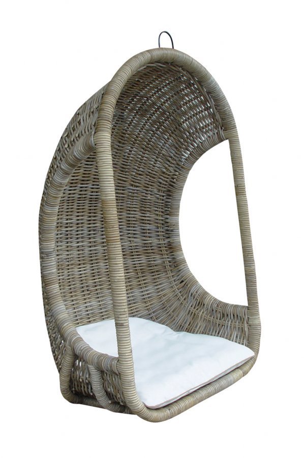 Riipputuoli harmaata rottinkia. Leveys 77, syvyys 73, korkeus 120 cm. Enimmäiskuormitus 120 kg.