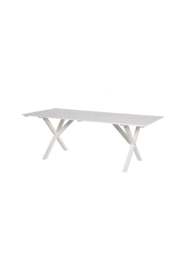 Valkoiseksi kuultomaalattu mäntypöytä. Valmistettu Ruotsissa. Pituus: 200 cm Leveys: 96 cm