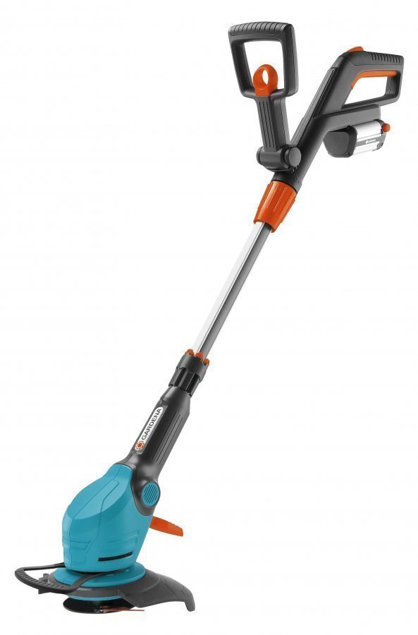 Kevyt ja erittäin helppokäyttöinen GARDENA EasyCut Li-18/23R -akkutrimmeri sopii erinomaisesti pitkien nurmikon reunojen ja vaikeasti saavutettavien alueiden leikkaamiseen. Vaihdettavan ja erittäin tehokkaan litium-ioniakun ansiosta leikkaaminen on tehokasta ja teho säilyy pitkään. Trimmerissä käytettävä RotorCut-järjestelmä takaa tarkan leikkaustuloksen ja tekee koneesta hiljaisen. Erikoispitkä ja helposti säädettävä lisäkahva varmistaa mukavan ja ergonomisesti optimoidun työasennon. Teleskooppivartta voi säätää käyttäjän pituuden mukaan, mikä tekee työskentelystä mukavampaa. Siimapäässä oleva kahvan kulman säätö helpottaa työskentelyä vaikeapääsyisillä alueilla, kuten trampoliinin tai penkin alla. Kasvisuoja voidaan taittaa suojaamaan kasveja, kun leikataan kukkapenkkien ja istutusten vieruksia. Turvakytkin estää akkutrimmerin tahatonta käyttöä. Trimmerin mukana toimitetaan akkupaketti, akkulaturi, varaterälipas ja 20 varaterää. Alkuasennukseen ei tarvita työkaluja. Kokonaisleikkuuhalkaisija on 230 mm. Litium-ioniakun 18 V:n / 2,0 Ah:n tehon ansiosta voidaan saavuttaa jopa 50 minuutin käyttöaika. Tämä riittää noin 1250 metrille nurmikon reunaa. Akun lataustilan ilmaisin POWERinfo ilmoittaa, milloin akku on ladattava. Tyhjä akku latautuu täyteen noin 3 tunnissa.