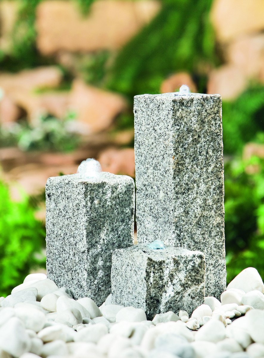 Suihkukaivot ovat superhelppoja ja kauniita kokonaisuuksia. Valitse paikka, lisää vesi ja sähkö. Setti sisältää kaiken tarvittavan. Neptun LED suihkukaivossa vesi valuu 3 pylvään päältä, joissa on LED-valo. Mitat 12x12cm, kivi kork. 15/25/40 cm Sisältää pumppu 1000 l/h, 24 W Allas 60 L, halkaisija 60cm, syvyys 34cm 3xLED valorengas.
