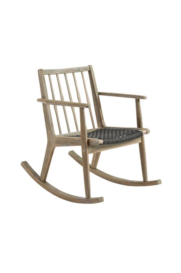 Keinutuoli, jonka runko akasiapuuta. Nano-öljy ja PNZ-pinnoite antavat pitkäkestoisen UV-suojan ja parantavat tuolin kestävyyttä. Istuin UV-suojattua polyesterinarua. Sisäkäyttöön sekä ulkokäyttöön katoksen alla. Korkeus 85 cm, leveys 72 cm, syvyys 90 cm.