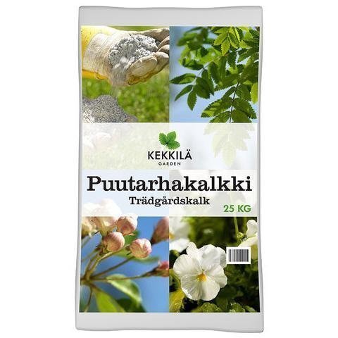 Kekkilä Puutarhakalkki 25 kg. Kekkilä Puutarhakalkki on tarkoitettu maan perus- ja ylläpitokalkitukseen. Se valmistetaan puhtaasta, luonnonmukaisesta marmorirouheesta, joka liukenee nopeasti kasvin käyttöön ja vaikuttaa pitkään. Koostumukseltaan Kekkilä Puutarhakalkki on murumainen ja kostea, joten se on helppo levittää tasaisesti ja ilman pölyä. Puutarhan kalkitseminen on yhtä tärkeä hoitotoimenpide kuin lannoittaminenkin, sillä se vähentää maan happamuutta – maan ravinteet ovat parhaiten kasvien käytettävissä kun maan pH-arvo on noin 6,2–6,5. Käyttöohje:. Ylläpitokalkitusta tehdessäsi levitä kalkkia 2–4 kourallista neliötä kohden. Peruskalkitusta tehdessäsi ota huomioon maalaji:. – Hiekkamaa 50 kg/100 m2. – Savimaa 200 kg/100 m2.