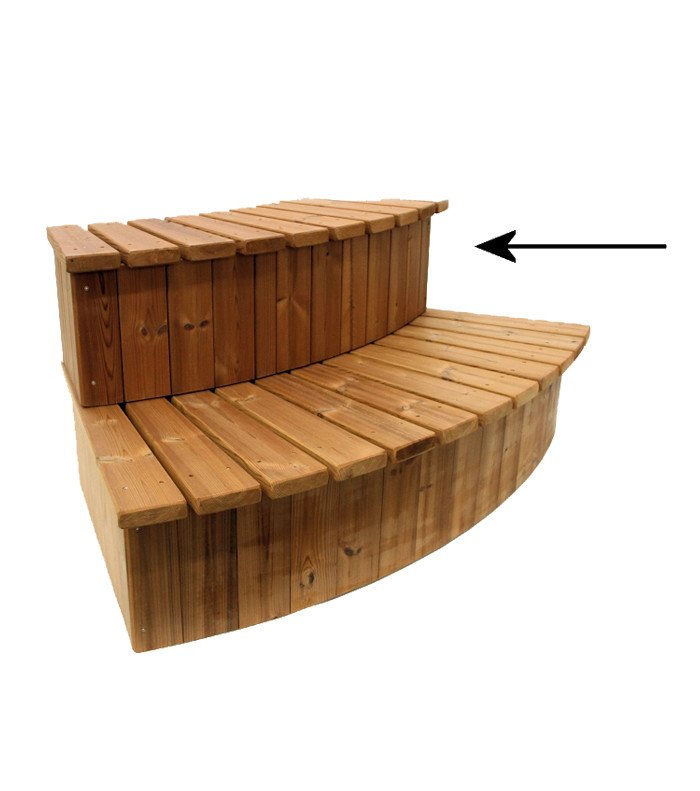 Kaarirappu koostuu erikseen myytävistä ala- ja yläaskelmista. Rappuja voi yhdistellä myös rinnakkain, esim. asettamalla kahden ala-askelman päälle yhden tai kaksi yläaskelmaa. Tämä lämpökäsitellystä puusta valmistettu säänkestävä yläaskelma sopii halkaisijaltaan 170 cm:n Kirami-kylpytynnyreihin (Woody M, Easy M, Cozy M ja Ultima M). Mitat (l x s x k): 92 x 37 x 25 cm, paino 9 kg.