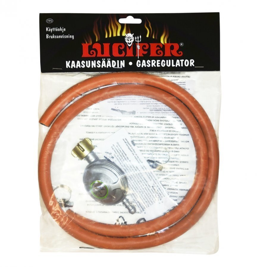 Lucifer matalapaineensäädin kierreventtiilipulloon on uuden sukupolven säädin kaikkiin matalapaineella (30mbar) toimiviin nestekaasulaitteisiin. Lukitusmekanismi estää kaasun virtamaan ulos ellei säädin ole kiinni laitteessa. Jos säädin on auki-asennossa niin säädintä ei voi kytkeä tai irrottaa kaasupullosta. Lucifer matalapainesäädinsarja täyttää uuden EN161290 standardin. Säädin tulisi vaihtaa uuteen 5-vuoden välein ja kaasuletku 3-vuoden välein. Lucifer Matalapainesäädinsetti sisältää säät. . .