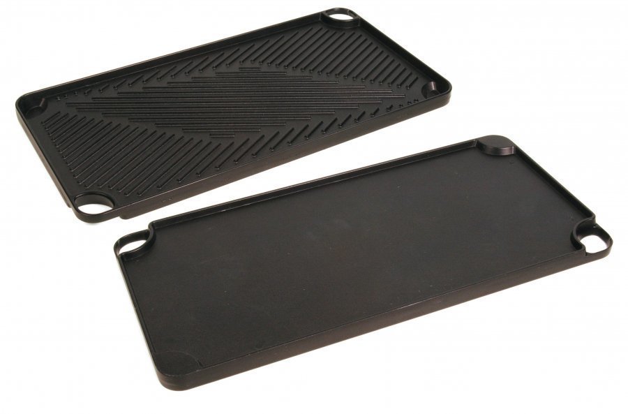 Kaksipuolinen parila/paistoalusta. Parila on alumiinivalua, jossa on tarttumaton pinta. – Koko 46×23 cm, reuna 2 cm. – Kaksipuoleinen parila/paistolaatta.