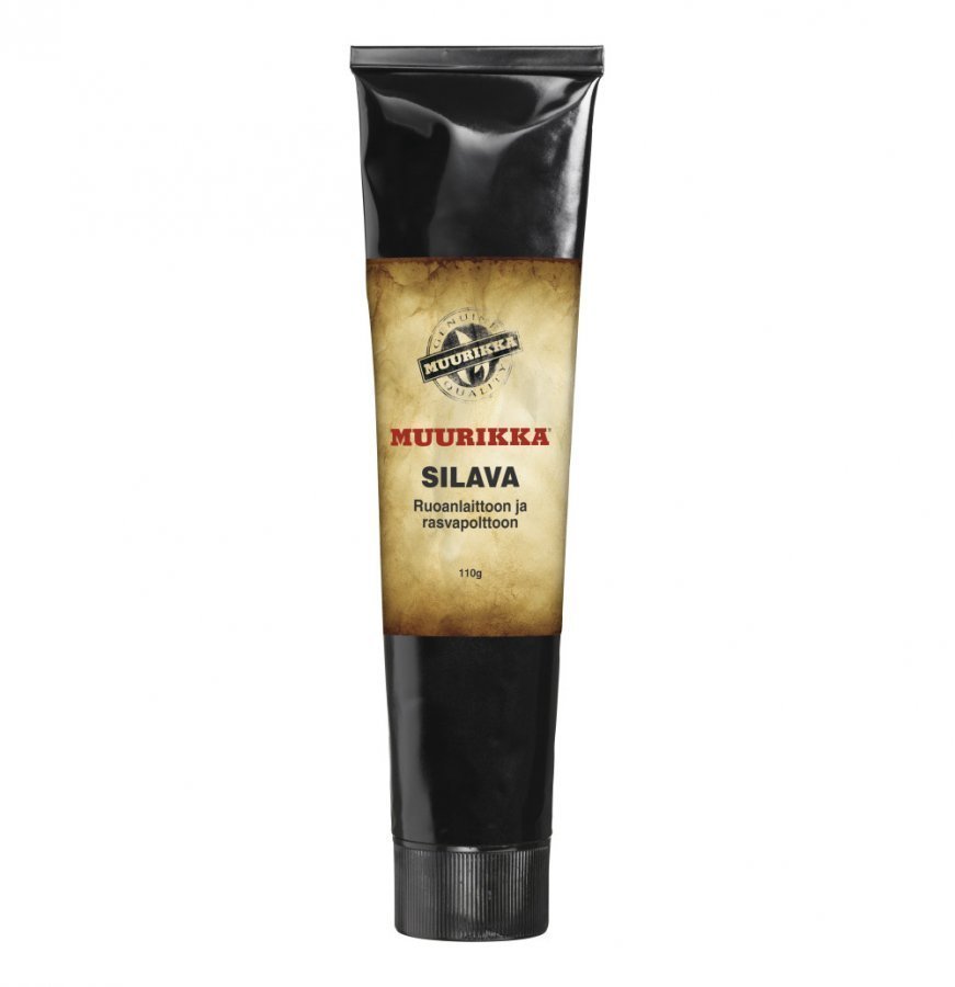 MUURIKKA Silava. Puhdas luonnontuote sisältää 70 % selkäsilavaa ja 30 % kotimaista rypsiöljyä. Kätevästi tuubista annosteltava paistorasva ruoan valmistukseen ja valurautaisten/rautaisten pannujen, patojen ja kaasugrillien rasvanpolttoon ja hoitoon
