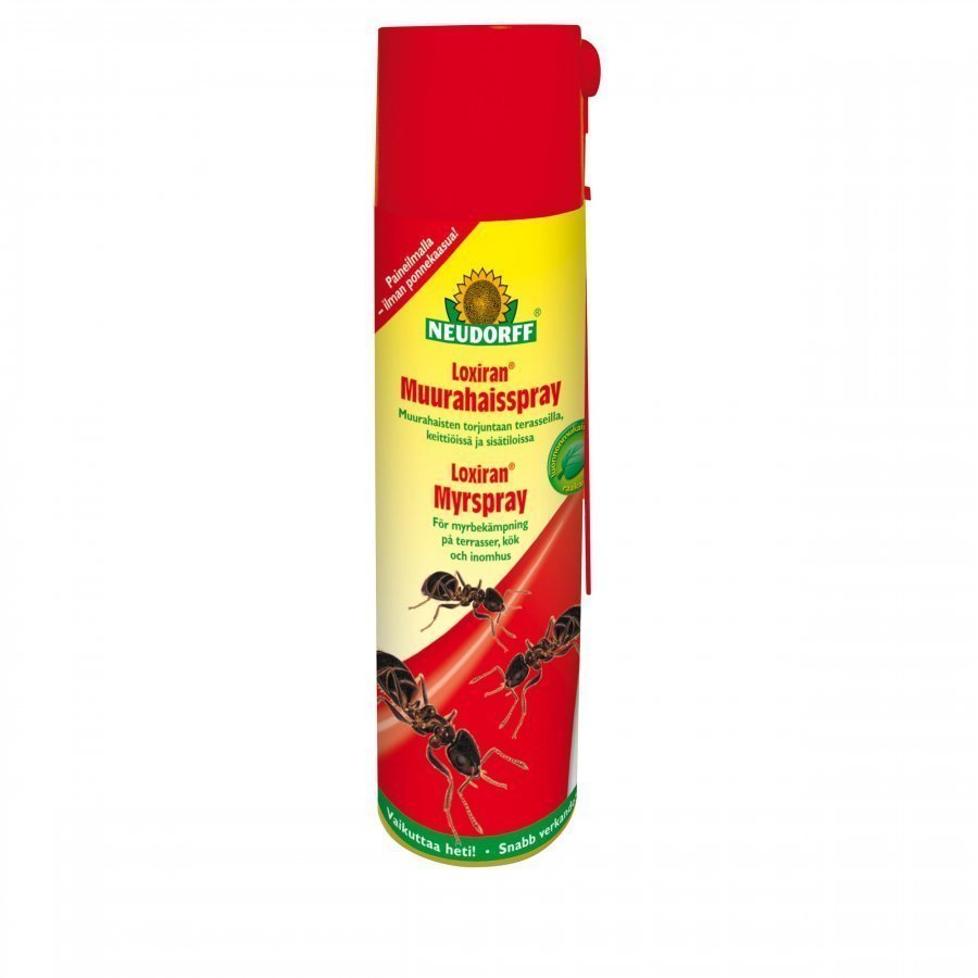 Loxiran muurahaisspray Muurahaisten torjuntaan sisätiloissa, kivetyksillä, terasseilla ja viljelemättömillä mailla. Käyttövalmis spray. Nopea