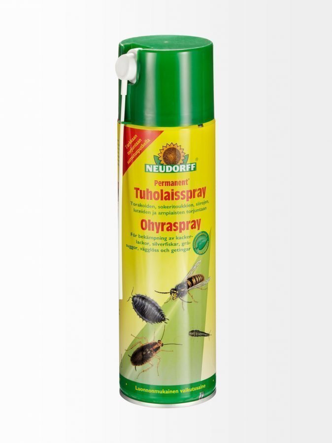 Permanent-tuholaisspray on pitkävaikutteinen aerosoli ryömivien ja lentävien hyönteisten torjuntaan sisätiloissa ja ulkona rakennusten välittömässä läheisyydessä. Spray soveltuu myös suojaamaan lemmikkieläimiä punkeilta ja kirpuilta, tuotetta suihkutetaan eläinten makuu- ja yöpymispaikkoihin, ei suoraan eläimiin. Pakkauskoko 500 ml.