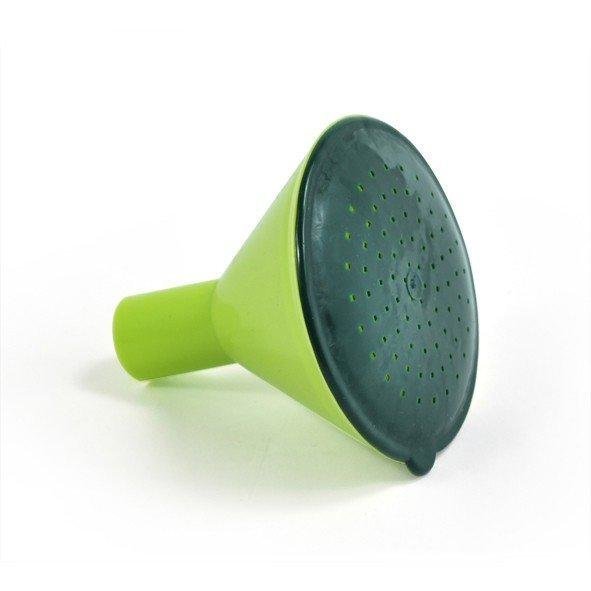 Sihtisuppilo-osa 5L Plastexin puutarhakannuun. Valmistettu Suomessa. Suppilo sihdillä kaatonokan päässä jakaa veden kevyeksi sateenomaiseksi suihkuksi, joka ei vahingoita herimpiäkään kukkia.