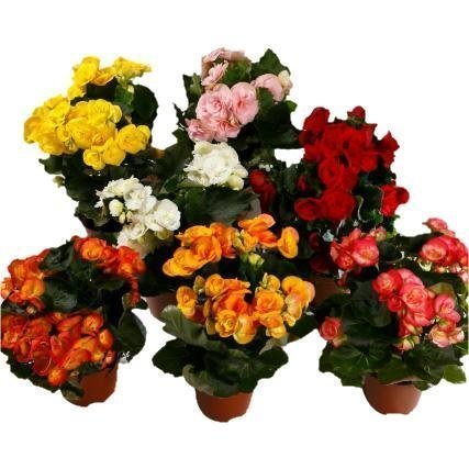 Ruusubegonia upeissa väreissä. Begoniat viihtyvät parhaiten valoisassa paikassa, mutta suorasta auringonpaahteesta ne eivät