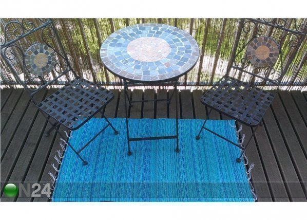 Käsityönä kudottu muovimatto, käyttö mahdollista molemminpuolin – soveltuu käytettäväksi sisä- ja ulkotiloissa -… Lue lisää »