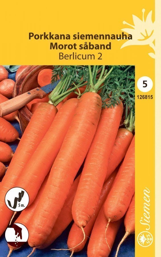 5 m siemennauha. Talviporkkana, säilyvä, suurijuurinen, sopii konekorjuuseen.