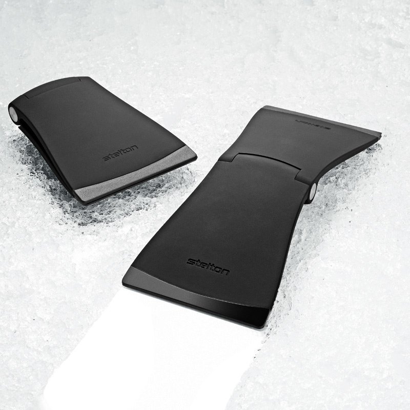 Jäänraaputin valmistettu muovista jossa on kumi pinnoite joka estää naarmujen syntymisen. Kova reuna jäälle ja pehmeä reuna lumelle.