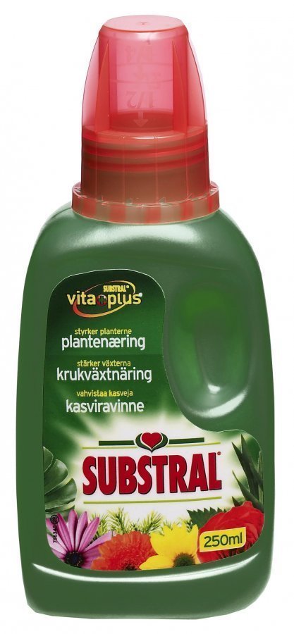Substral Kasviravinne on kasteluveteen sekoitettava yleiskasviravinneliuos, joka sopii kaikille multaan ja vesiviljelynä istutettaville viher- ja kukkakasveille. Substral Kasviravinnenesteen Vita+Plus ravinneyhdistelmä edistää runsasta kasvua, antaa lehdille täyteläisen vihreän värin ja tuottaa kauniita kukkia. Substral Vita-Plus on yhdeksän eri pää- ja hivenravinteen ainutlaatuinen yhdistelmä. Kasvit pystyvät ottamaan liukoisessa muodossa olevat ravinteet heti käyttöönsä, jonka vuoksi ravinne vahvistaa kasveja ja saa ne kukoistamaan. Tuotetiedot. NPK-lannoiteliuos 6+1,3+5, sisältää hivenravinteita. Vähäkloorinen. Ravinnepitoisuudet:. – typpi (N) 6 %. – fosfori (P) 1,3 %. – kalium (K) 5 %.