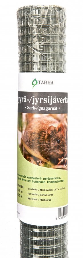 Galvanoitu ja hitsattu metalliverkko, silmäkoko 12,7 mm, lanka 0,8 mm.Myyrien ja muiden tuhoeläinten torjuntaan. Soveltuu myös kompostin pohjaverkoksi.