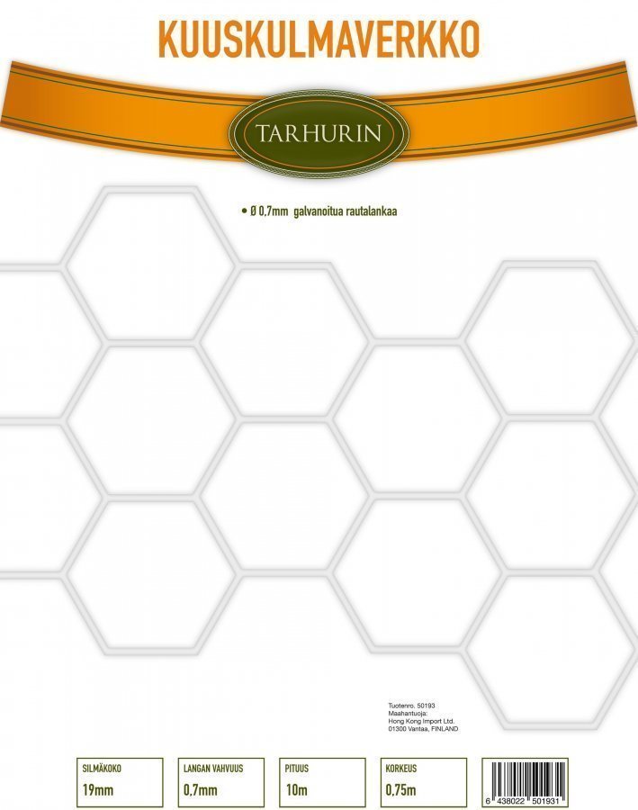 Kirjoita ensimmäinen arvio tuotteelle “Tarhurin 0,75 X 10 M Kuuskulmaverkko”