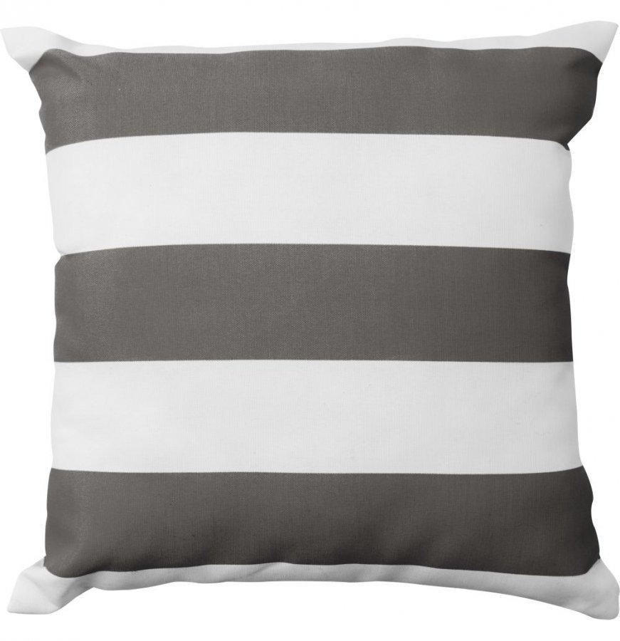 Raidallinen Tok Garden -koristetyyny esim. terassille. Materiaali on vettähylkivää polyesteriä. Koko 43 x 43 x 8 cm. Väri: harmaa.