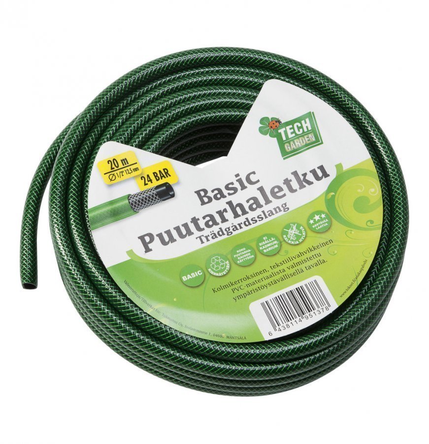 Koko puutarhakauden käyttöön tarkoitettu TECH GARDEN puutarhaletku on valmistettu kolmikerroksisesta, tekstiilivahvikkeisesta PVC-materiaalista ympäristöystävällisellä tavalla. Kasteluletku on kestävää laatua sekä kierrätettävää, kalkkia hylkivää materiaalia. Ei sisällä Kadmiumia eikä Bariumia. Kasteluletkun pituus 20 m, halkaisija 12. 5 mm,24 bar. Väri vihreä.