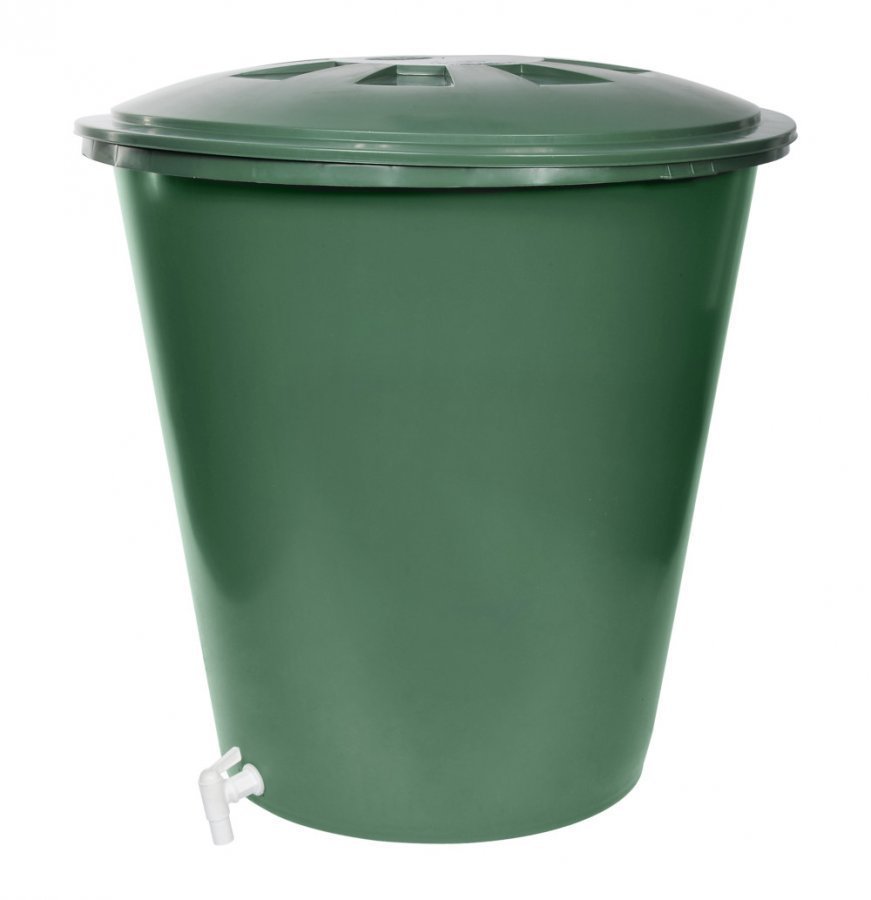 Reilunkokoinen sadevesitynnyri kannella ja hanalla. Tilavuus 210 litraa. Vesitynnyrissä ei ole valmista reikää hanalle,joka on itse kiinnitettävä. Vesitynnyrin korkeus on 70 cm. Väri vihreä.
